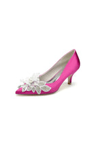 Elevate your elegance with these stunning Floral Beading Pointed Toe Satin Kitten Heels. Crafted from luxurious satin, these heels feature intricate floral beadwork that adds a touch of sparkle and sophistication. The pointed-toe design elongates the legs, while the kitten heel offers the perfect balance of style and comfort for long-lasting wear. Ideal for weddings, formal events, or evening occasions, these slip-on heels are a graceful addition to any ensemble. Perfect for the modern woman who values both beauty and comfort.