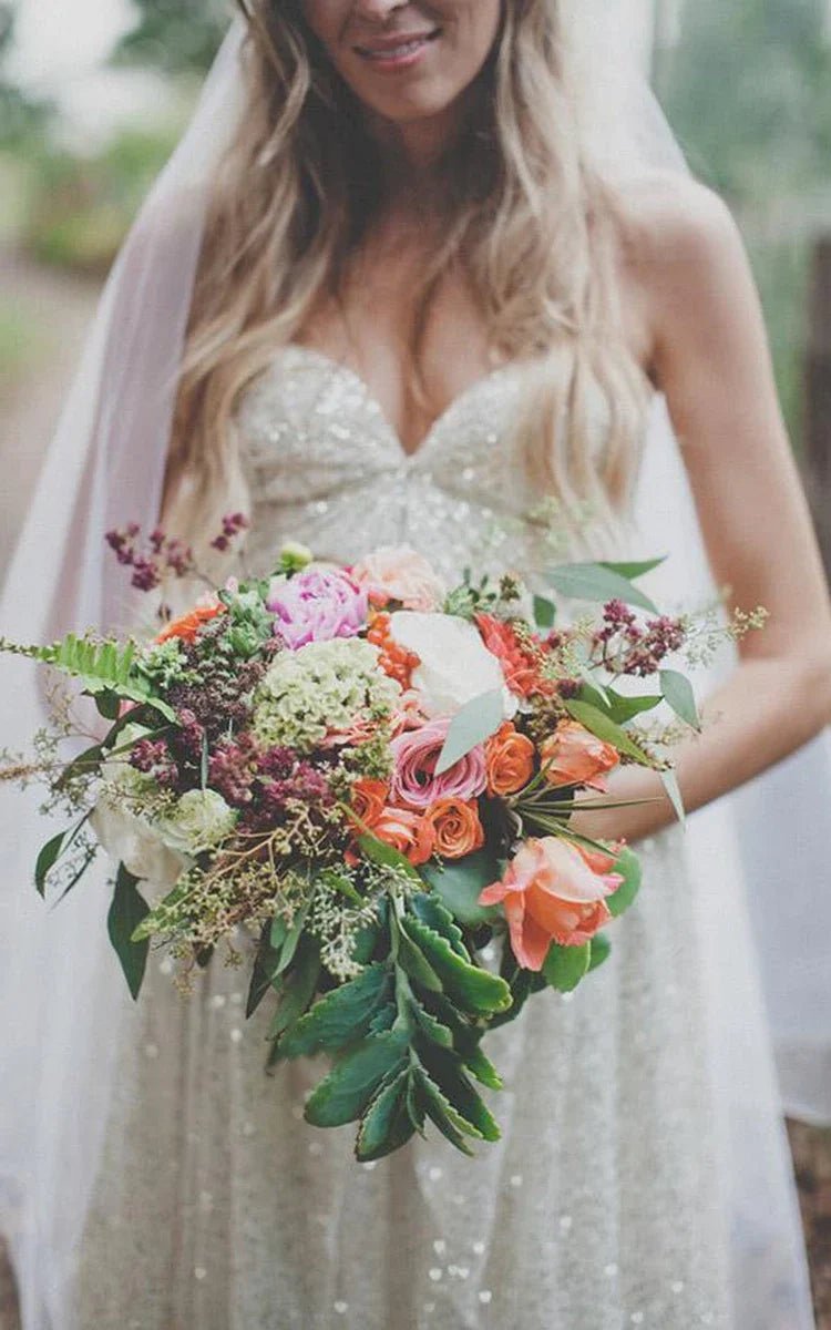 Glamorous Spaghetti Strap Sleeveless Floor-length Sweetheart Sequins Wedding Dress