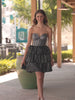 This stunning A-line dress is made from a glamorous sequin fabric that sparkles with every move. The strapless sweetheart neckline accentuates the bust, while the corset-style bodice provides a flattering fit. The intricate beading and playful ruffles combine elegance with a touch of whimsy, making it an ideal choice for any special occasion.