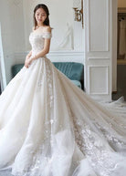 Gorgeous Off the Shoulder Lace Wedding Dresses Tulle Vintage Bridal Gown
