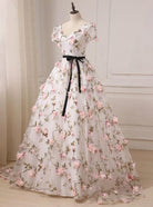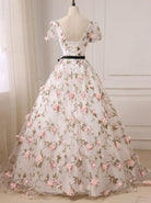 Step into a world of elegance and grace with the Gorgeous V-neck 3D Floral Lace Ball Gown Quinceanera Dress. This stunning gown features an exquisite A-line silhouette that beautifully flatters the figure, offering both comfort and movement as you dance the night away. The ivory color provides a classic and sophisticated look, perfect for a Quinceanera or prom, and is sure to radiate an air of refined beauty. The V-neckline adds a touch of modern allure, while the sleeveless design allows for effortless style and elegance. The lace-up back ensures a customized, perfect fit, giving you a tailored look that enhances your natural shape. What truly sets this dress apart is its 3D floral applique embellishments that cascade delicately across the gown, bringing depth and texture to the soft tulle fabric. The intricate flowers create a romantic and whimsical aesthetic, making you feel like you're wearing a piece of art. The addition of sashes at the waist adds a refined finishing touch, accentuating the figure while adding a touch of elegance to the overall design.