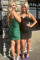 Green Sequin Lace Sweetheart Fitted Short Dress