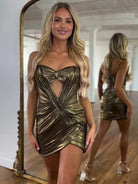 Helia | Gold - Strapless Bodycon Metallic Short Homecoming Dress With Keyhole