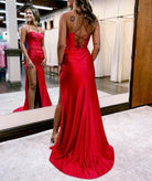 Spaghetti Straps Satin Mermaid Prom Dress with Slit