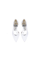 Experience effortless sophistication with these luxurious white flats. A sleek and minimalistic design elevates any occasion, while smooth fabric material adds a pure touch of refinement. The pointed toe and wider heel create a chic balance, while the rubber sole with distinct textures provides exceptional grip and traction. The heel is a light shade, complementing the pristine white upper perfectly. These premium shoes exude elegance and simplicity, making them a must-have in any wardrobe. From special events to everyday wear, elevate your style with these versatile and timeless white flats.