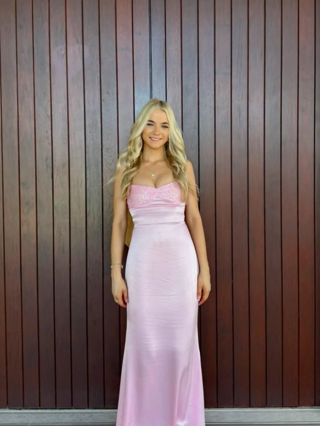 Sparkling and glamorous, this mermaid satin dress is designed to dazzle. The figure-hugging silhouette flows gracefully to the floor, while shimmering sequins catch the light with every movement. Spaghetti straps and a lace-up back ensure a flattering, adjustable fit, making it as comfortable as it is stunning. Perfect for evening events or formal occasions, this dress combines elegance with a touch of sparkle to stand out effortlessly.