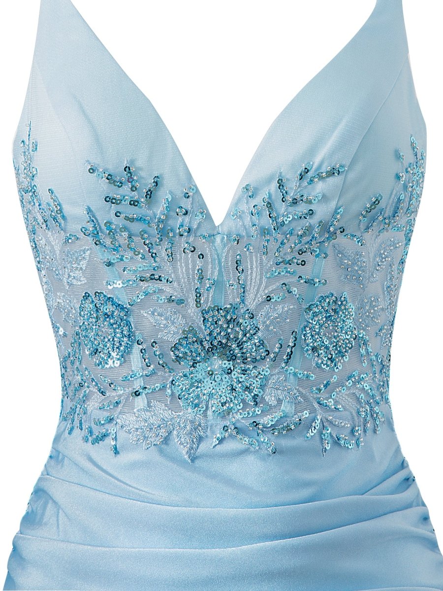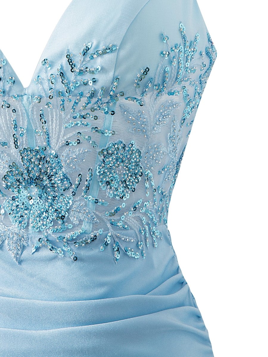 Get ready to shine in the Ella, a Sheath Short V Neck Jersey Homecoming Dress that combines elegance and style. Crafted with high-quality jersey fabric, Ella guarantees a comfortable and flattering fit. It showcases a stylish sheath silhouette that beautifully outlines your figure. This captivating dress, adorned with exquisite lace appliques, beads, and sequins on the bodice, promises a glamorous entrance. Its V-neckline accentuates your collarbones while the sleeveless design keeps you comfortable throughout the event. Ella in blue color, it's definitely a dress that makes a statement.