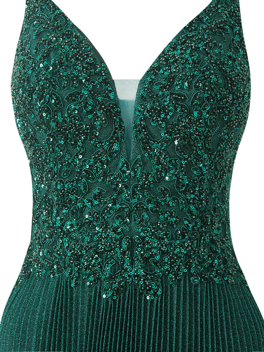 Introducing Elizabeth in Rose Pink color, an A-line Floor Length Glitter Jersey Prom Dress that's as unique as you. Elizabeth doesn't just impress with her A-line silhouette. Her details are equally striking. The dress is crafted from crinkled glitter jersey fabric, capturing the light with every move you make. Elizabeth dress is a perfect choice for both evening dresses and formal dresses, with its spaghetti strap and deep V neckline accentuate your neck and shoulders, lending a subtle allure to your overall look. Of course, no dress would be complete without a dash of sparkle. Elizabeth boasts lace appliques, beadings, and sequins on the bodice, making this dress a real showstopper.