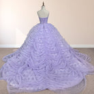 The Organza Ball Gown Sweetheart Lavender Pleats Party Dress is a show-stopping piece that combines romantic charm with glamorous flair. This dress features a sweetheart neckline that beautifully accentuates the bust and shoulders, while the organza fabric gives the dress a light, airy feel. The lavender color adds a soft, dreamy touch, making it perfect for any elegant celebration. The pleated design and ruffle embellishments add texture and movement, while the sequined details provide a sparkling finish that catches the light from every angle. The chapel train enhances the gown’s regal appearance, creating a stunning silhouette as you glide through the event. A corset back ensures a tailored fit, offering both comfort and elegance. Perfect for a prom, gala, or any special occasion!