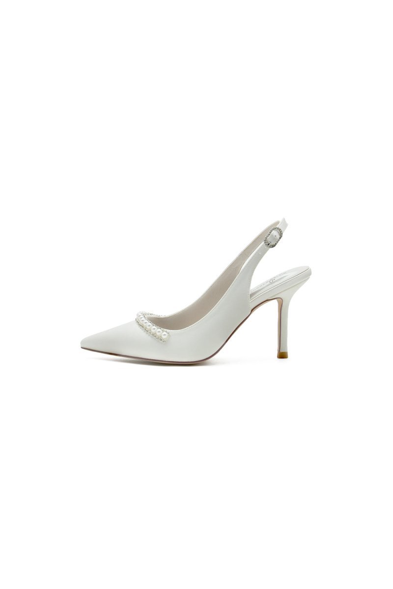 Elevate your bridal look with pearl embellished peep toe slingback high heels. Featuring elegant pearl details and a pointed toe design, these shoes add a sophisticated touch to your wedding or prom attire. The stiletto heels offer an elegant lift, while the rubber sole ensures comfort and stability. Lined with soft imitation pigskin, these shoes provide both style and luxury for your special day.