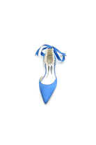 Pearl Ribbon Pointed Toe Ankle Strap Kitten Heels