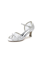 Elevate your style with our Peep Toe Mesh Strap Buckle Stiletto Heels With Bow. Designed with a chic peep toe and delicate mesh strap, these heels add a touch of elegance to any outfit. The buckle closure ensures a secure fit, while the stiletto heel provides a flattering lift. Complete the look with a stylish bow detail. Whether you're attending prom or a wedding, these shoes are perfect for bridal shoes or evening shoes for any special event.