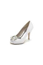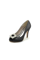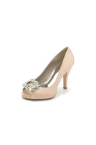 Effortlessly elevate your style with these Peep Toe Slip-on Stiletto Heels. The rhinestone embellishments add a touch of glamour to any outfit. With their slip-on design and comfortable fit, these heels are perfect for any occasion. Make a grand entrance at your prom or wedding with these shoes, perfect as bridal shoes or evening shoes.