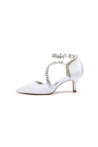 Step into elegance with these Pointed Toe Beading Ankle Strap High Heels. These shoes feature exquisite beading on a satin upper for a touch of sparkle, designed for your wedding, prom, or any special occasion, The 6 cm stiletto heels offer a perfect balance of comfort and style, while the pointed toe and ankle strap add a chic, refined finish. A timeless choice for wedding shoes or prom shoes, ensuring you look stunning all night long.