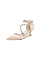 Pointed Toe Beading Ankle Strap High Heels
