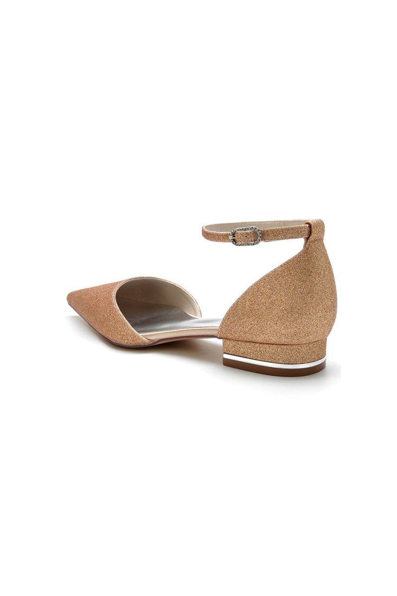 These elegant low-heel wedding shoes feature a pointed toe and a sparkling crystal ankle strap for a touch of glamour. a low heel offers comfort without compromising on style, making them perfect for brides, bridesmaids, or guests. These shoes are versatile and chic for any formal event, Ideal for weddings, proms, and other special occasions.
