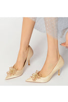 Elevate your look with these Pointed Toe Crystal & Pearl Flower Heels, designed to make a statement at your wedding or prom. With a stunning Crystal & Pearl Flower embellishment and a stiletto heel height of 8.5 cm, they add a touch of elegance and glamour. And the faux silk upper material and imitation pigskin sole ensure comfort. These heels will have you stepping into the spotlight with confidence, perfect for any glamorous occasion.