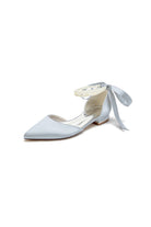 Create a sophisticated look for any special occasion with Pointed Toe Pearl Ribbon Ankle Strap Kitten Heels. These shoes are made from satin, adorned with pearls, and have a pointed toe, buckle closure, and comfortable low heels. They also feature an artificial leather lining and a rubber sole. Perfect for weddings, proms, evenings, parties, and bridesmaid duties.