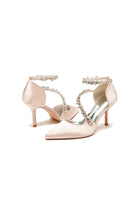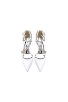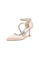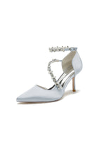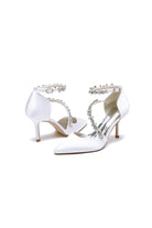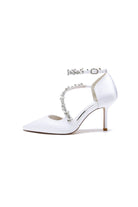 Complete your bridal look with Pointed Toe Slingback Strap High Heels. The crystal embellishment adds an elegant touch while the stiletto heel provides a flattering 8.5 cm lift. The slingback strap ensures a secure fit while the pointed toe and rubber lining offer both style and comfort. Perfect for any wedding occasion.