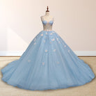Embrace the beauty of nature and elegance with this Quinceanera Dress Spaghetti Straps Beading with 3D Butterfly Appliques. This breathtaking gown features a soft sky blue color that exudes serenity and charm. It is crafted from layers of ethereal tulle fabric that move gracefully as you dance and celebrate. The spaghetti strap neckline gives a modern and youthful touch, beautifully framing the shoulders while the sleeveless design allows for maximum freedom and comfort. The corset back ensures a secure and flattering fit, offering flexibility and style throughout the evening. What truly sets this dress apart is the exquisite 3D butterfly appliques, delicately placed across the bodice and skirt, adding an enchanting, whimsical effect. The gown is further enhanced with sequins and beadings, which catch the light and provide a touch of sparkle and glamour. This Quinceanera Dress is perfect for a girl who wants to celebrate in both beauty and style.