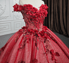 Red Flower Off-the-Shoulder Quinceañera Dress