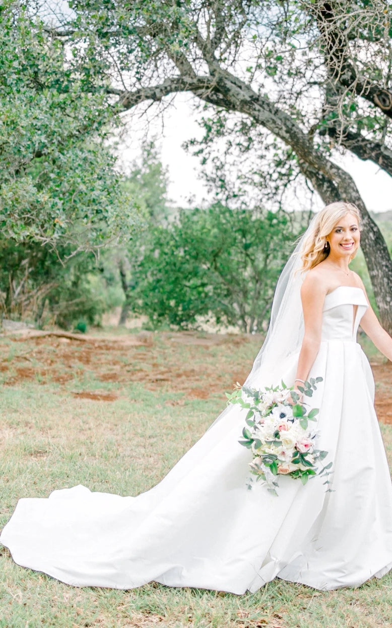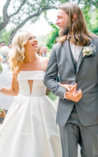 Satin A-Line Strapless Beach Elegant Wedding Dress With Button Back And Chapel Train