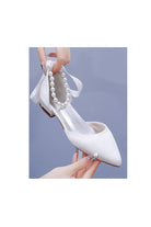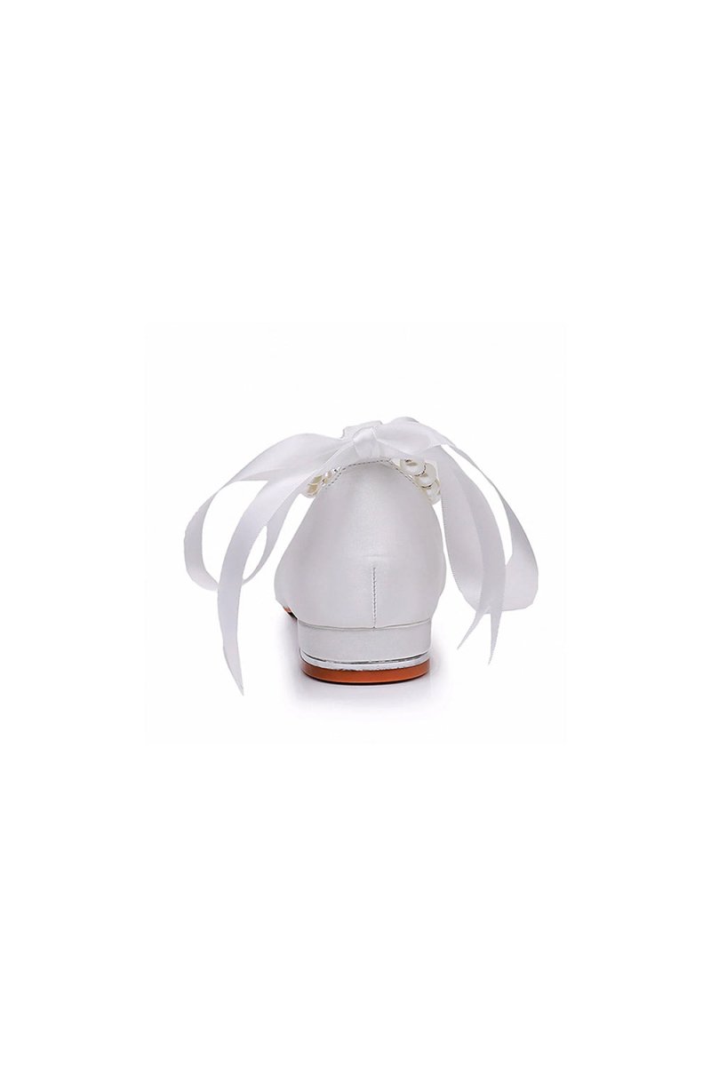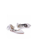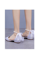 Satin Beaded Ribbon Low Heels Bridal Shoes