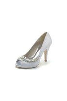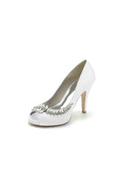 These Satin Peep Toe Slip-on Rhinestone High Heels are both elegant and comfortable. Made of high-quality satin material, they provide a soft and smooth feel. The peep toe design adds a touch of sophistication, while the rhinestone embellishment adds just the right amount of sparkle. Whether you're attending prom or a wedding, these shoes are perfect for bridal shoes or evening shoes for any special event.