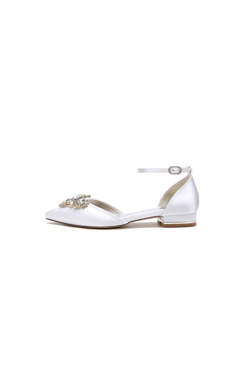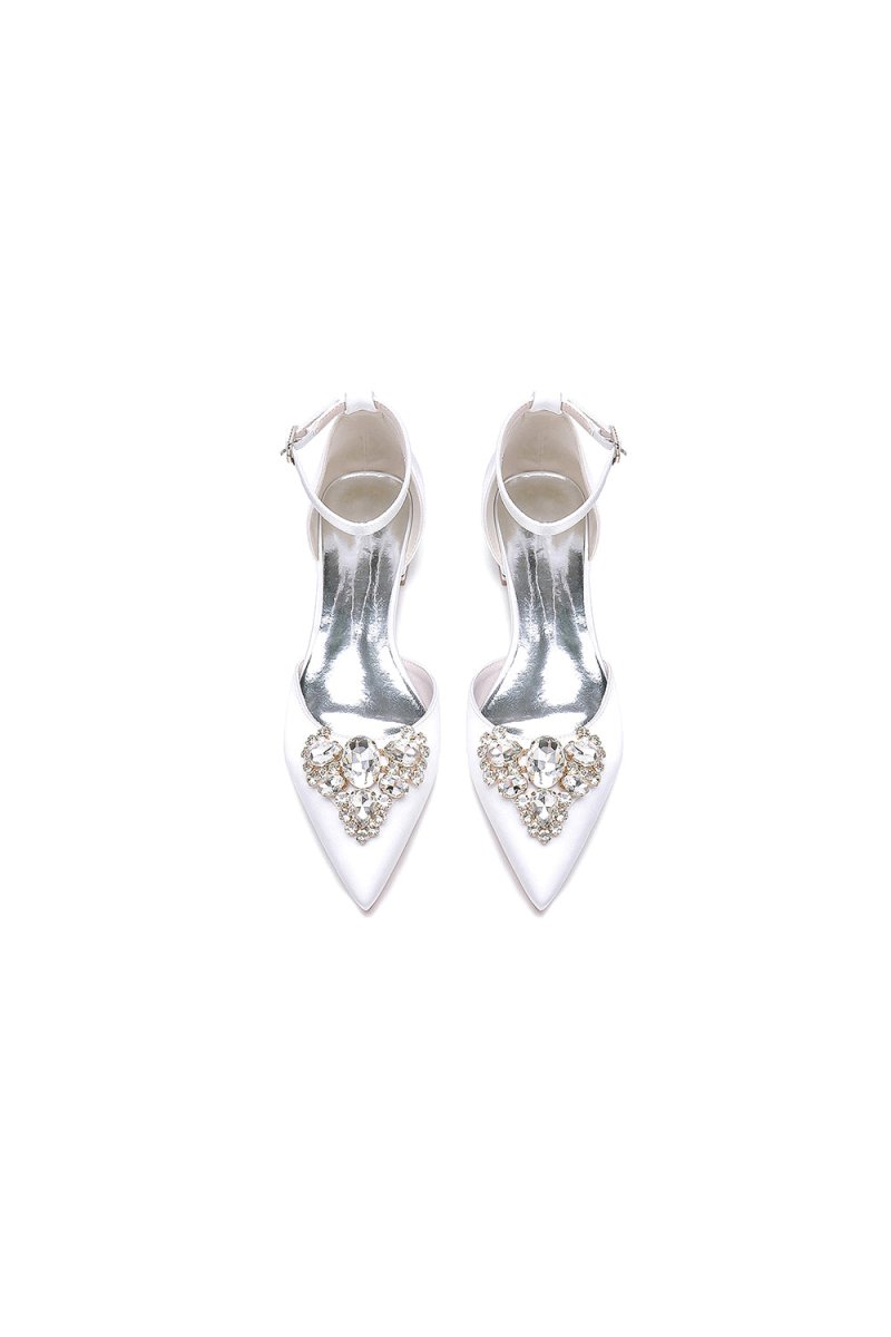 Elevate your formal attire with Satin Pointed Toe Ankle Strap Rhinestone Kitten Heels. The rhinestone embellishment adds a touch of glamour to any special occasion. Made with satin and rubber soles, these low-heeled shoes offer both comfort and style. Perfect for weddings, proms, or parties, secure your pair today.