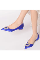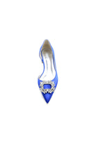 Satin Pointed Toe Kitten Heels With Rhinestone