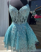 Heiden | A-Line Spaghetti Straps Short Homecoming Dress with Appliques