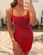 Dive into a world of glamour with Kerstin, an embodiment of sophistication designed for the ultimate homecoming experience. The sheath silhouette, effortlessly molded from beaded stretch-satin fabric, promises a flattering fit while shimmering with every step. The delicate spaghetti-strap neckline frames the collarbone, leading the gaze down to a sultry front slit - a bold statement of modern femininity. Ensuring the perfect fit, a lace-up back cinches the waist while allowing for adjustable comfort. Wear Kerstin and shine with unmatched elegance.