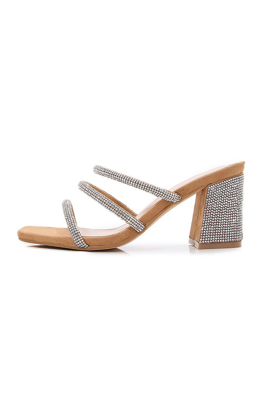 Silver Rhinestones Slip On Chunky Heel Sandal