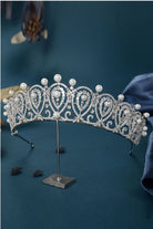 The delicate design combines elegance and sophistication, with pearls accentuating the tiara's graceful curves. Perfect for special occasions, this tiara exudes timeless beauty and refined charm.