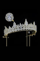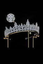 Expertly crafted with dazzling silver zirconia, our bridal tiara adds the perfect touch of elegance to any wedding ensemble. Its intricate design and sparkling details make it a stunning choice for any bride. Elevate your special day with this beautiful accessory.