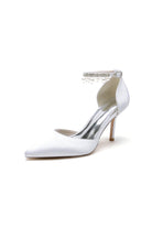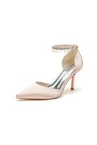 Complete your bridal look with exquisite Pointed Toe Wedding Heels. Featuring a striking pearl tassel and elegant crystal embellishments, these stiletto heels add a touch of sophistication to your special day. With a comfortable 8.5 cm heel, one-strap buckle closure, and high-quality materials, these heels are perfect for weddings and bridesmaids. Walk down the aisle in style and comfort with these luxurious heels.