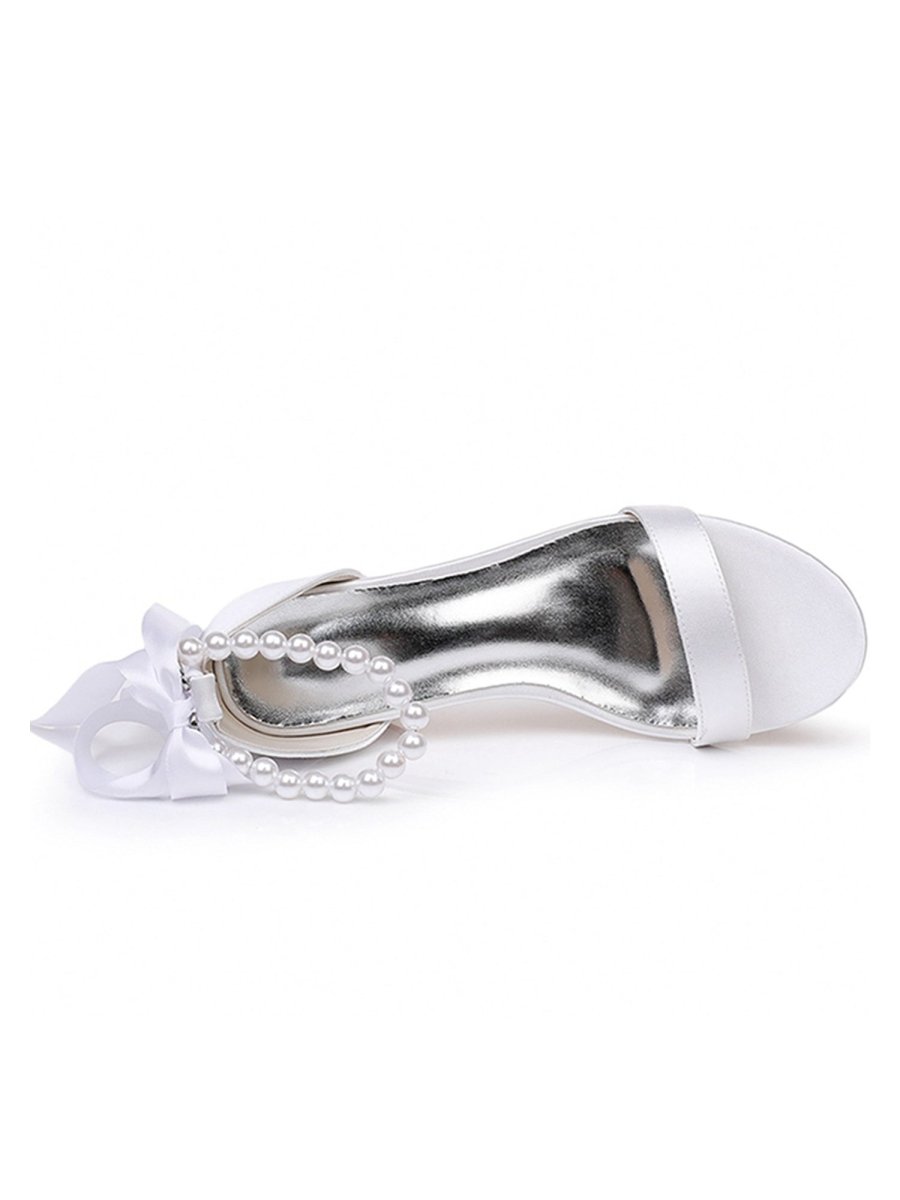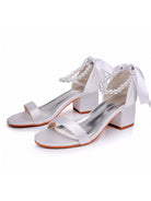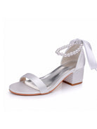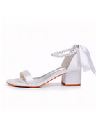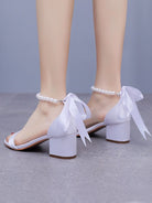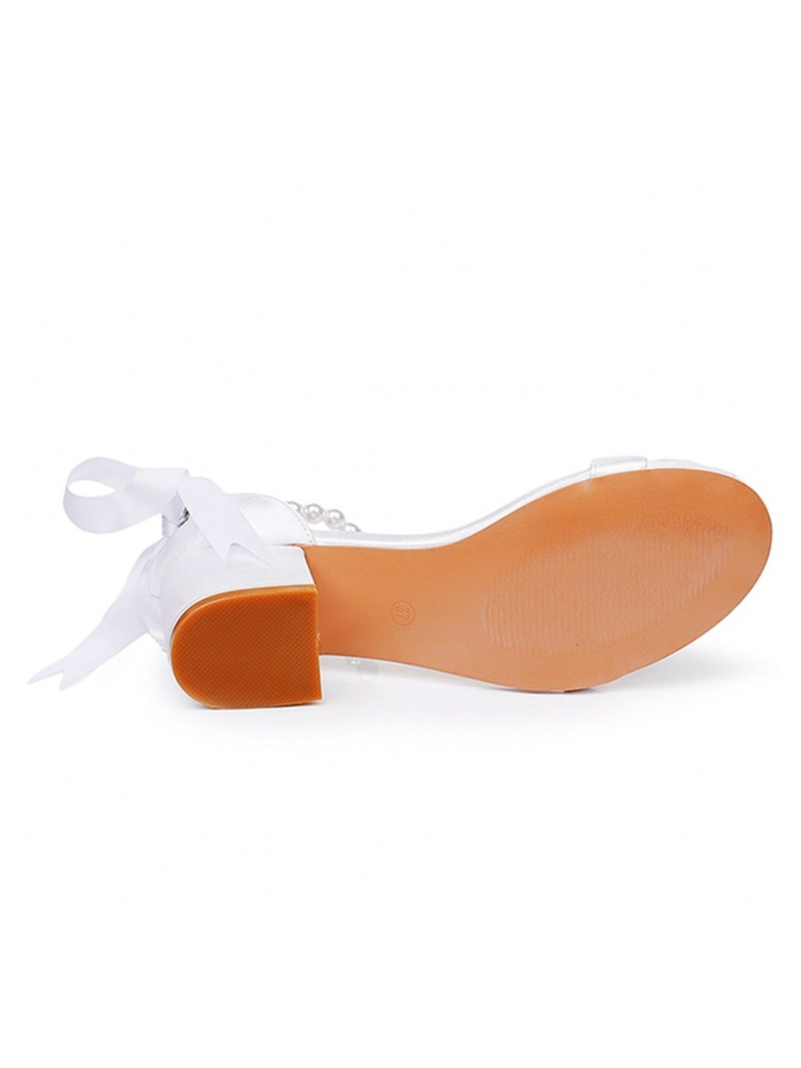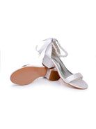 Single Strap Chunky Heels Sandals with Beaded Ribbons