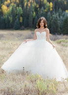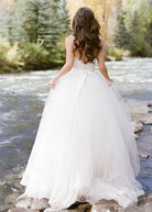 Crafted in delicate lace with soft appliqué details, this stunning wedding dress features a classic sweetheart neckline and sleeveless bodice, offering a perfectly feminine and flattering shape. The dress flows effortlessly into a sweeping train, while the zipper back adds a touch of modern allure. A dainty belt at the waist accentuates your silhouette, bringing balance to the voluminous skirt and enhancing the overall princess-worthy charm. In luminous diamond white, this gown is ideal for grand celebrations. A standout choice among elegant bridal gowns, it’s made for unforgettable "I do" moments.