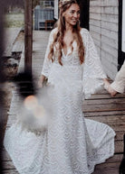 Unique Lace V-Neck Mermaid Bohemian Flare Long Sleeve Beach Bridal Gowns
