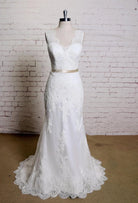 V-Neck Sleeveless Lace Mermaid Wedding Dress With Satin Sash