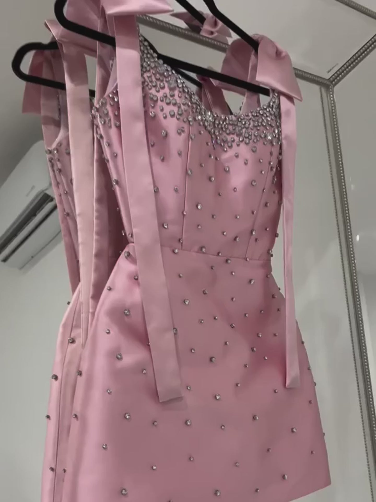 Designed in a flattering A-line silhouette, this short satin homecoming dress features a chic square neckline and a shimmering touch of hand-applied beading that catches the light with every movement. A delicate bowknot detail adds a playful yet elegant finish, while the lace-up back ensures an adjustable and secure fit. Whether you're headed to homecoming, a cocktail event, or a birthday party, the Valen dress delivers just the right amount of sparkle and sophistication. Its vibrant pink satin fabric brings a fresh, youthful charm, making it the perfect choice for any celebration where you want to stand out in style.