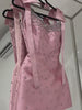 Valen | Pink Square Neck Satin Short Strapless Homecoming Dress With Bows