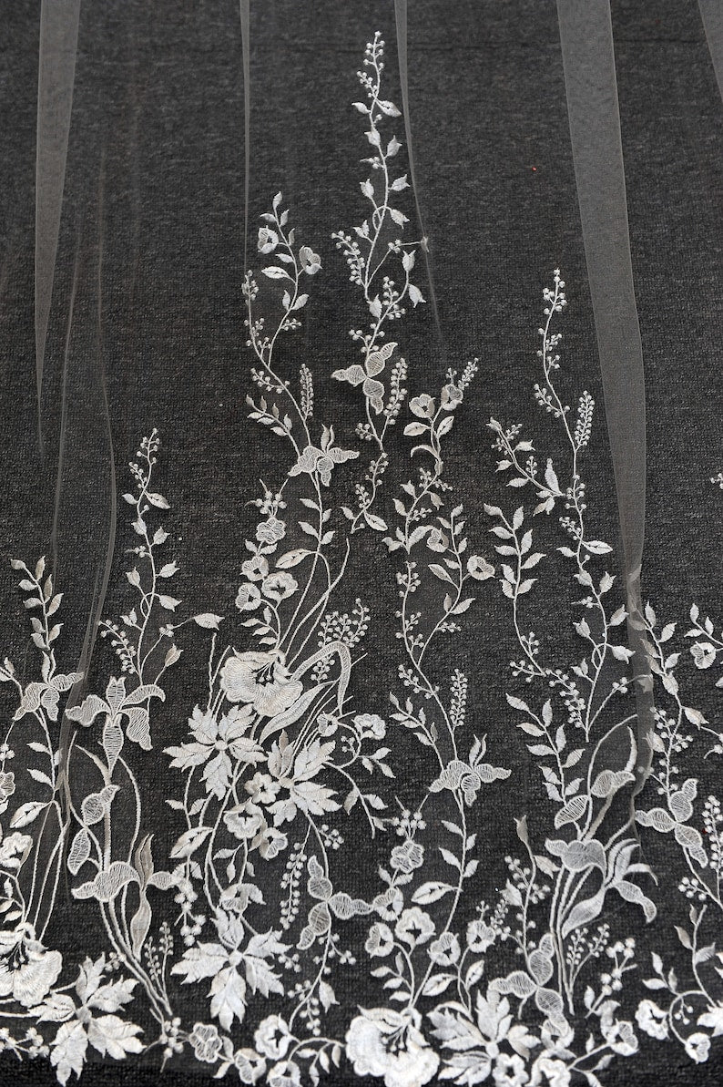 Vintage Flower Lace Veil Cathedral Tulle Bridal veil
