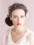 - Vintage-inspired birdcage veil with pearls.