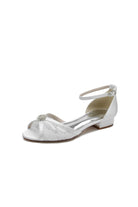 Step into elegance with the Lace Open Toe Flats with Ankle Strap. These beautifully crafted flats feature delicate lace detailing, adorned with rhinestone embellishments that add a touch of sparkle. The soft faux silk upper and the comfortable low heel provide a perfect balance of style and comfort, making them ideal for all-day wear. The rubber sole ensures a stable step, while the faux leather lining adds a smooth finish. Perfect for weddings and bridesmaids, these flats bring grace and sophistication to your special occasion.