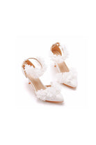White Flowers Pointed Toe Ankle Strap High Heels