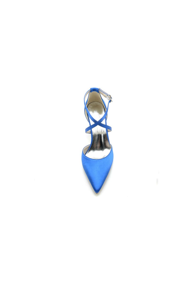 Elevate your look to new heights with these luxurious royal blue high heels. Boasting a sleek pointed-toe silhouette, they exude sophistication and make a bold fashion statement. The lustrous satin-like upper, crafted from premium blue material, adds an air of elegance and richness to your attire. The slender metallic heel offers the perfect blend of height and stability, its striking contrast with the shoe's body elevating the visual appeal. The ankle straps not only secure the fit but also add a touch of intrigue and allure. Adorned with silver buckles and a golden metallic accessory, these shoes exude glamour and sophistication in every detail. No matter the occasion, these royal blue high heels are a must-have for your wardrobe, effortlessly elevating any ensemble with their elegant and fashion-forward aesthetic.