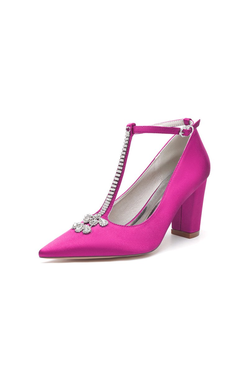 These elegant White Leather Pumps are a perfect blend of sophistication and style. Featuring a silver chain and rhinestone accents, these chunky heels with a pointed toe are ideal for prom shoes, wedding shoes, or party shoes. The slip-on design ensures comfort, while the chic embellishments make them an excellent choice for bridesmaid shoes and any special occasion.
