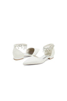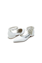 White Pearl Beaded Ankle Strap Pointed Toe Low Heels