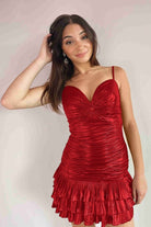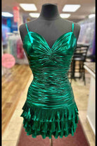 Ziya | Sparkly Metallic Green Straps Knotted Short Homecoming Dress with Ruffles